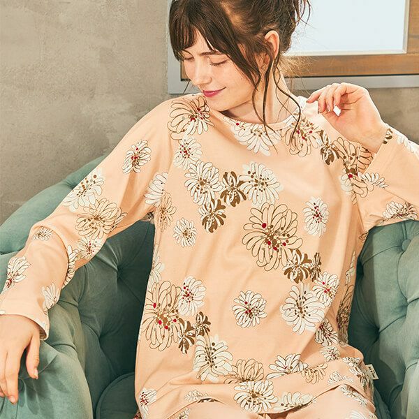 クリザンテーム柄 綿スムースロンT