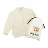 後ろ中央にはふわふわの猫とロゴが編まれており肉球がプリントされたボタンがついた猫好きにはたまらない一枚となっています。とても暖かく本格的に寒くなる時期にも丁度いい厚さのニットです。