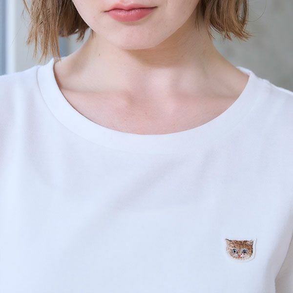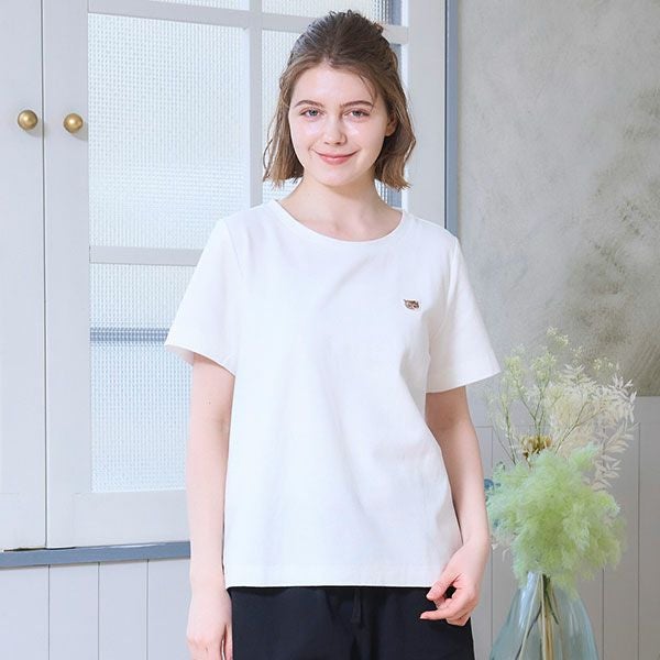 【トップス】ブランドアイコンの猫、ヌネットの刺繍ワッペンをフロントの裾につけ、 ブランド発祥のフランス国旗のタグもさりげなくつけてポイントにしています。 綿100%で優しい肌触りです。