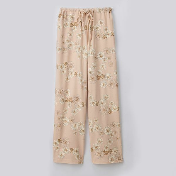 セットのパンツはブランドを象徴するクリザンテーム(菊)の花柄をあしらい、華やかで女性らしい印象に。