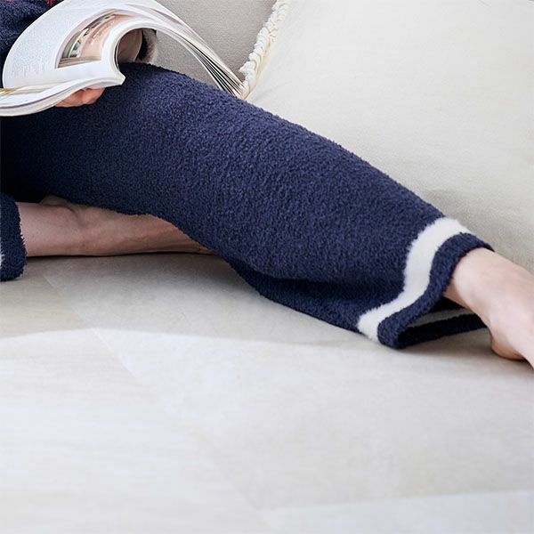 ポリエステル100%のモールヤーンニットで仕立てた、ふんわり軽やかな履き心地のロングパンツ。
