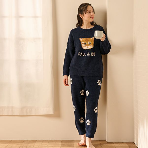 【ラッピング済み】ふわふわヌネットジャガード プルオーバー&ランダム猫足跡ジャガード ロングパンツ&コットンバッグ クリスマスセット