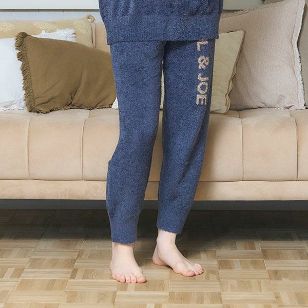 春・秋頃着用にぴったりな、光沢のある毛足の長いニットを使用した、柔らかくて軽いロングパンツです。シンプルな無地に、PAUL&JOEのロゴが大きく編まれています。メンズもあるのでカップルでの着用もおすすめ!