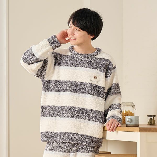 胸にはそれぞれ金糸と銀糸でロゴを施し、ヌネットのワッペンもあしらったこだわりのディテール。おうち時間を可愛く彩るのはもちろん、カップルでのコーディネートやギフトにもおすすめの一着です。