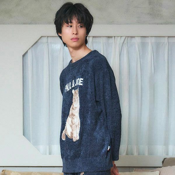 【メンズ】お座りヌネット柄 モコモコジャガード プルオーバー