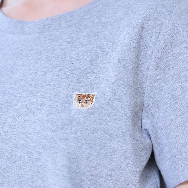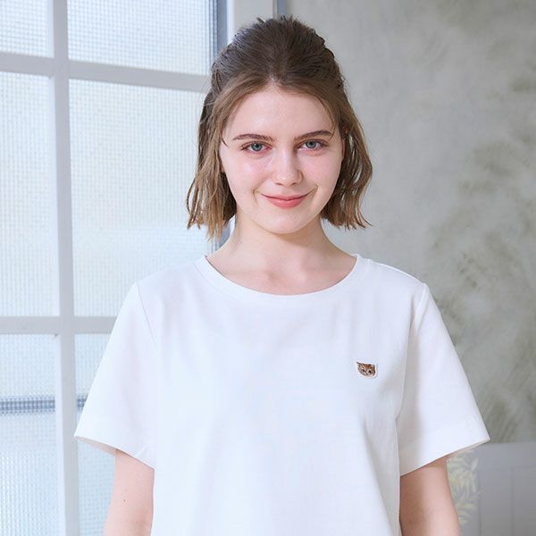 【トップス】ブランドアイコンの猫、ヌネットの刺繍ワッペンをフロントの裾につけ、 ブランド発祥のフランス国旗のタグもさりげなくつけてポイントにしています。 綿100%で優しい肌触りです。