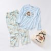 PAUL & JOEのアイコン猫、ヌネットとジプシーが仲良くお座りした愛らしいプリントのパジャマです。トップスの裾はラウンドカットで、さりげない可愛さをプラス。 セットのパンツはブランドを象徴するクリザンテーム(菊)の花柄をあしらい、華やかで女性らしい印象に。 軽やかに着られ、デイリーに快適な着心地です。 カラーは優しいピンクと爽やかなブルーの2色展開。おうち時間を特別に彩る一着です。