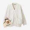 後ろ中央にはふわふわの猫とロゴが編まれており肉球がプリントされたボタンがついた猫好きにはたまらない一枚となっています。とても暖かく本格的に寒くなる時期にも丁度いい厚さのニットです。