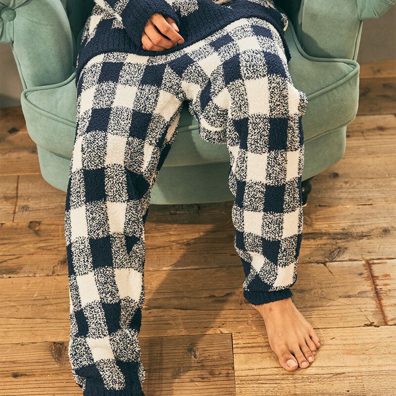 【メンズ】ブロックチェック モールヤーンジャカードロングパンツ