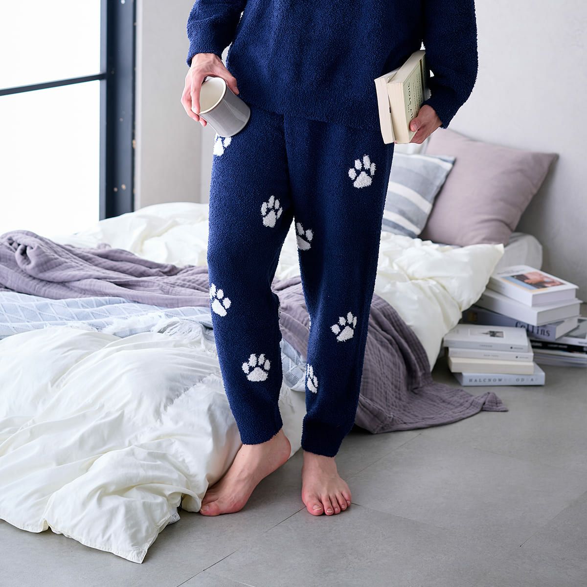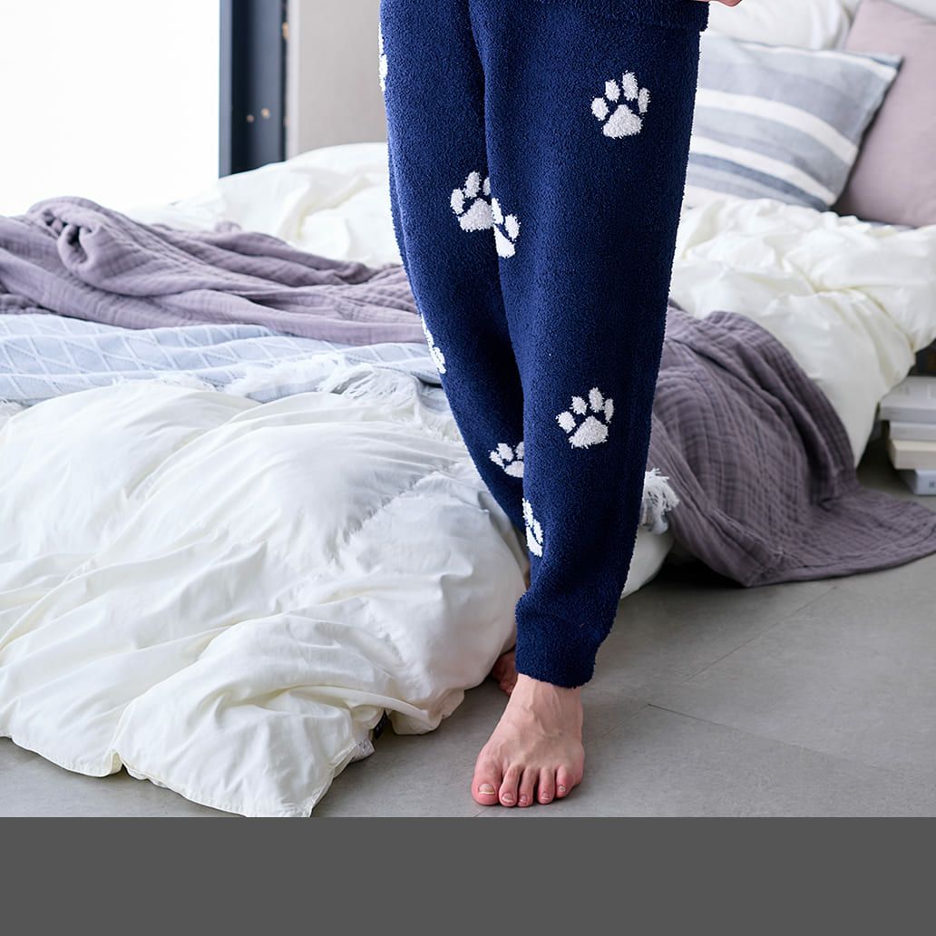【メンズ】ランダム猫足跡 モールヤーンジャカードロングパンツ