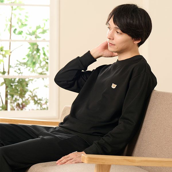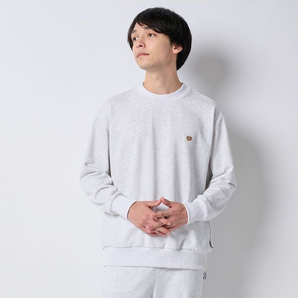 【トップス】軽くて薄手のスウェット素材で仕立てた、オールシーズン活躍するトップス。 シンプルなデザインながら、左胸のワッペンが大人っぽさをプラス。 衿ぐりにはトリコロールのテープをあしらい、さりげないアクセントに。 ベーシックな黒と白寄りのグレーの2色展開で、どちらも着回しやすくコーディネートしやすいカラーです。 軽やかで着心地がよく、カジュアルに外出する時にも、おうち時間にもぴったりの一着です。
