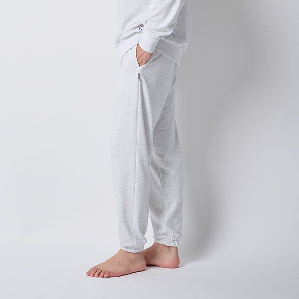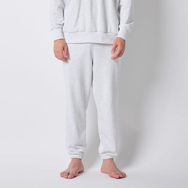 【パンツ】軽くて薄手のスウェット素材で仕立てた、オールシーズン着やすいパンツ。 シンプルでベーシックなデザインながら、ウエストはゴム仕様でリラックス感のある履き心地。 黒と白寄りのグレーの2色展開で、上のスウェットと合わせてセットアップコーデも楽しめます。