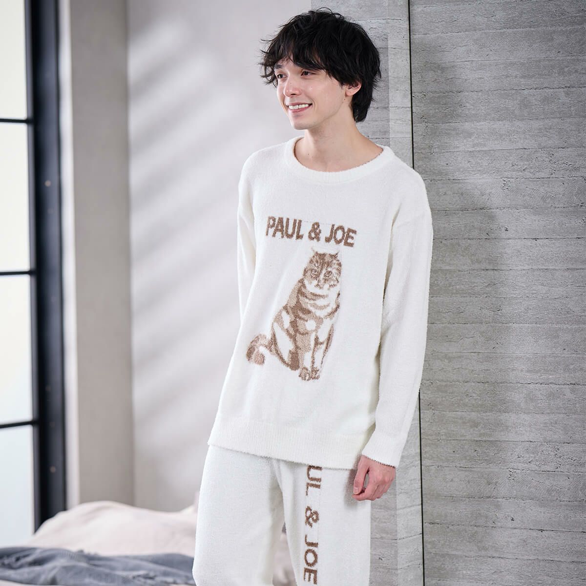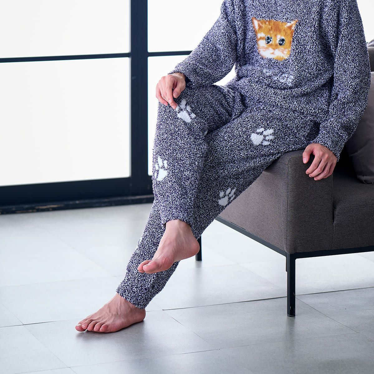 【メンズ】ランダム猫足跡 モールヤーンジャカードロングパンツ