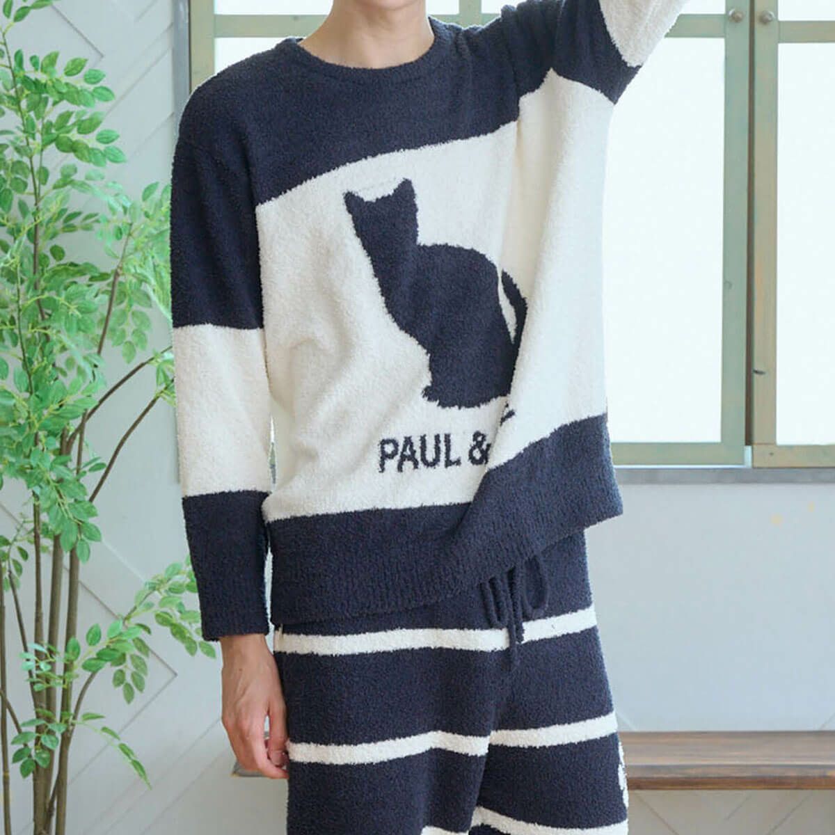 【メンズ】モールヤーン シルエット猫 ロングパンツ