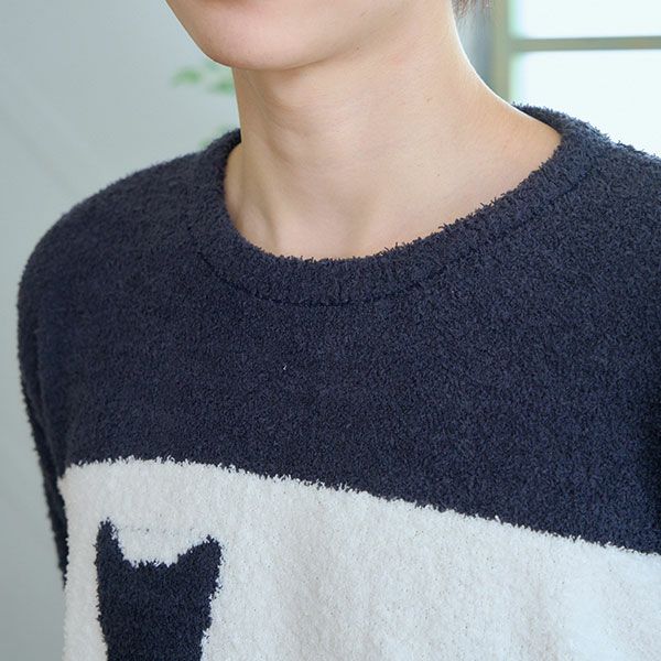 【メンズ】モールヤーン シルエット猫 プルオーバー