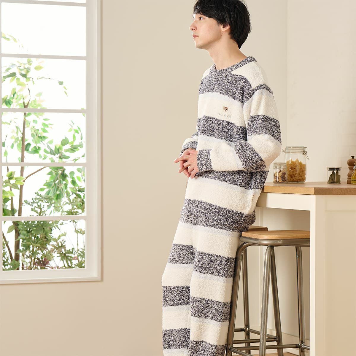 【メンズ】メランジボーダーニット ロングパンツ