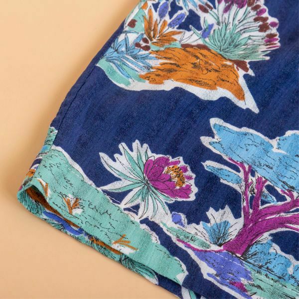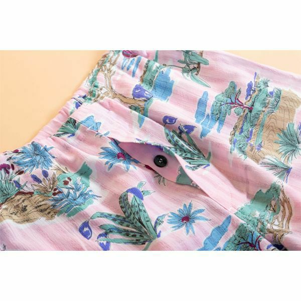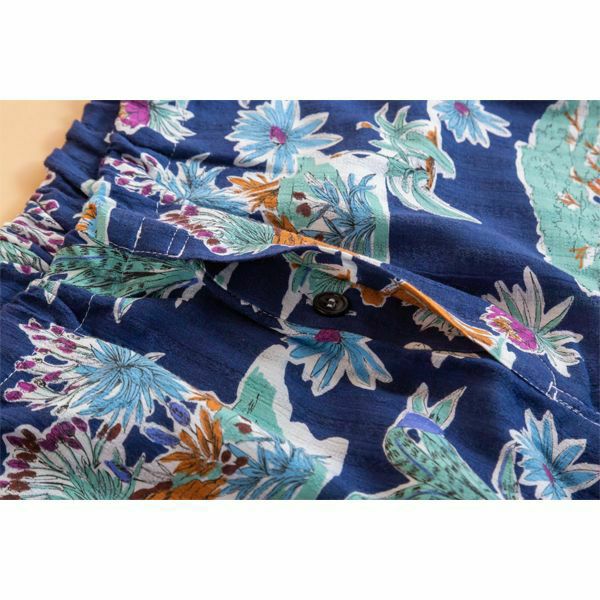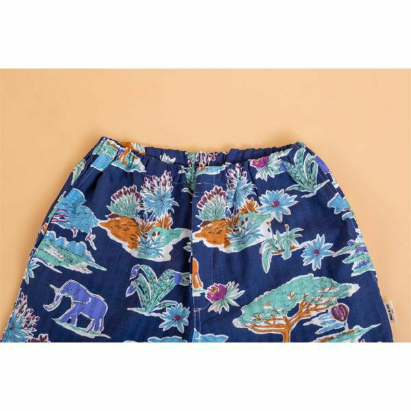 アロハシャツをイメージするサファリ柄が印象的なハーフパンツです。