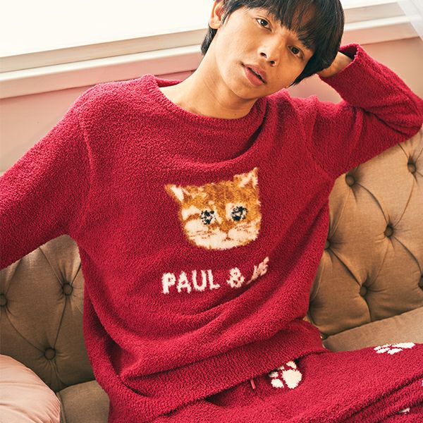 トップス:膨らみのある糸を使用した暖かい素材のプルオーバーです。 ボリューム感のある厚手のニットなので、寒い時期に着ていただくのがおすすめです。 胸にはブランドのアイコンの猫“ヌネット”とPAUL&JOEのロゴをナイロン糸でフワッと仕上げました。 猫好きにはたまらない一着です。