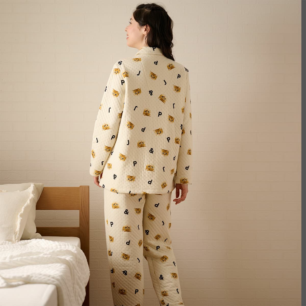 人気のヌネットがいっぱい散りばめられた、接結キルトの前開きパジャマ。