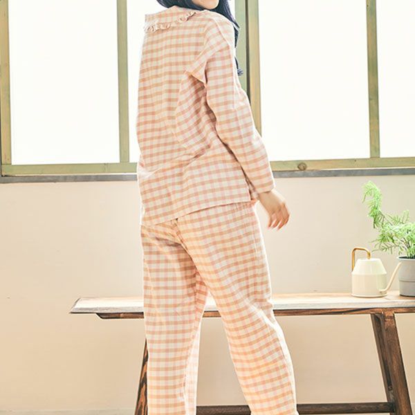 ネルチェックフリルパジャマ 上下セット