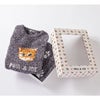 【ボトム】猫の足跡を散りばめた柄が可愛らしいロングパンツです。2色の糸を使用したメランジ生地を使用。柔らかな素材感と相まってお部屋でもリラックスできる一着です。軽くてふわふわで暖かく、快適な履き心地で、秋冬のリラックスタイムにぴったり。