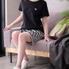 裾に“ヌネット ”と“ジプシー”のワッペンが付き、クールな雰囲気の黒のボーダーのハーフパンツです。動きやすく、両脇にポケットと背面にヒップポケットが付いています。一枚でも着やすいしっかりとした天竺素材です。