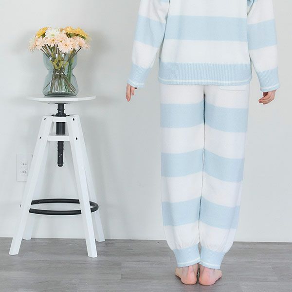 爽やかな色味のボーダーにPAU&JOEのロゴがサイドに編み込まれたフルレングスとなっております。