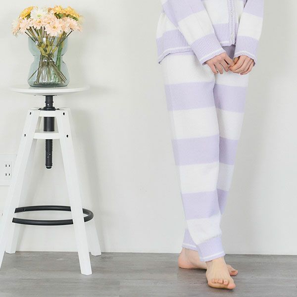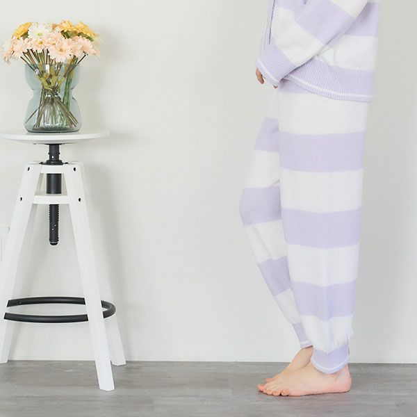 ポリエステルにナイロン糸を入れた、柔らかくしっとりとした肌触りのニットパンツです。