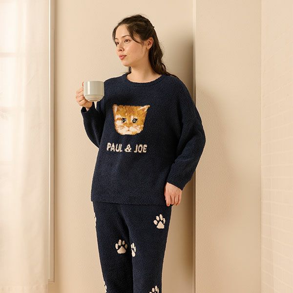 胸にはブランドのアイコンの猫“ヌネット”とPAUL&JOEのロゴをナイロン糸でフワッと仕上げました。猫好きにはたまらない一着です。