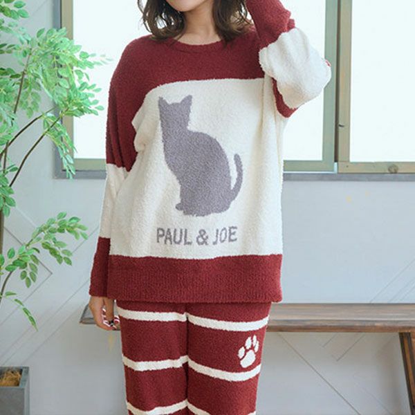 肌寒い時期に丁度いい厚さのニットです。フロントには猫がお座りしたシルエットとポール&ジョーのロゴが編まれています。メンズとお揃いで着ていただけます。