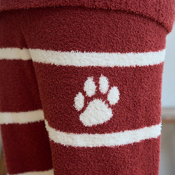 肌寒い時期に丁度いい厚さのニットです。飽きのこないボーダーに猫の足跡が編まれています。メンズもありますので、ペアで着ていただけます。