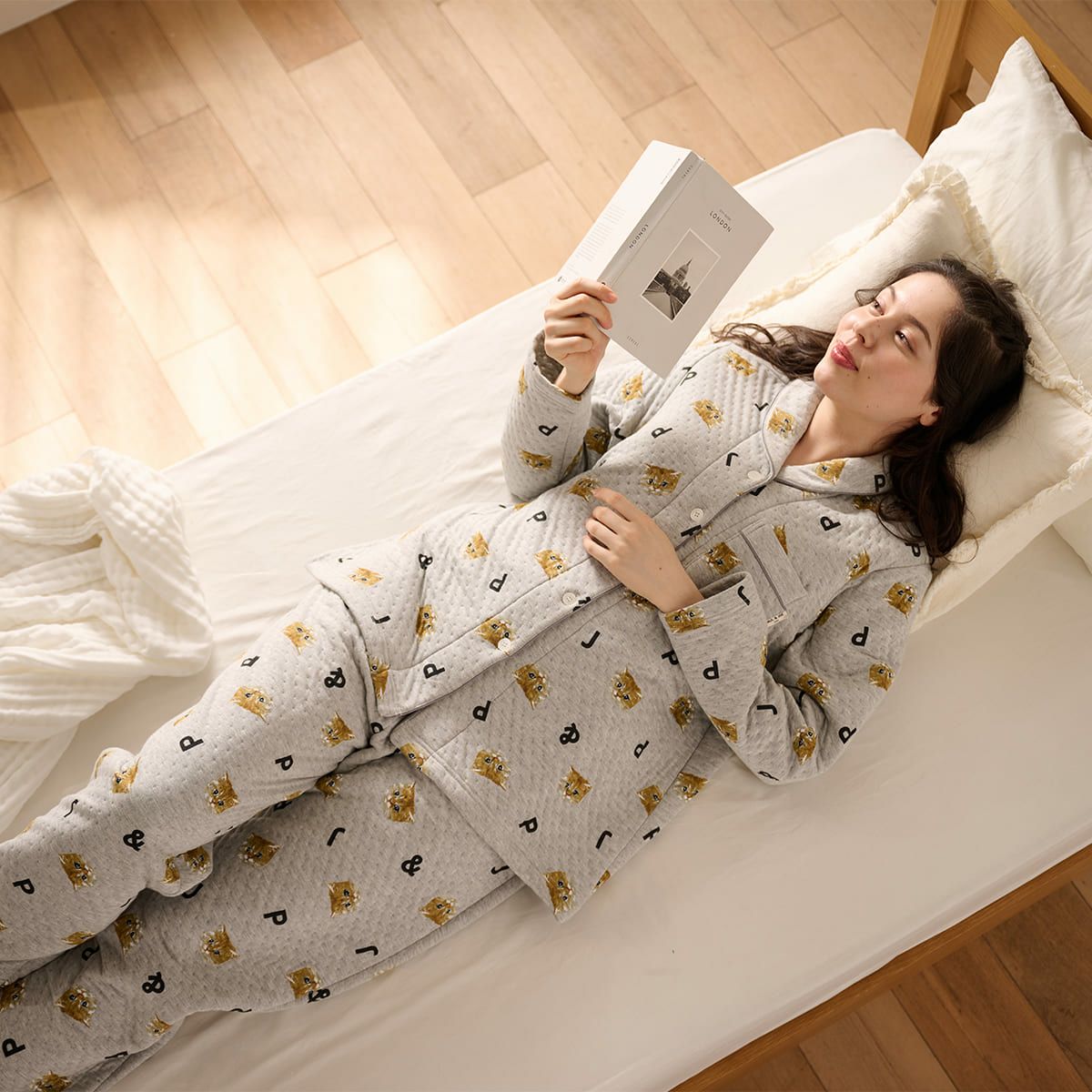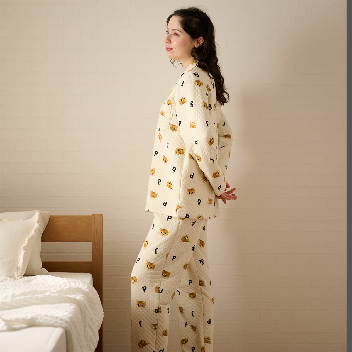 人気のヌネットがいっぱい散りばめられた、接結キルトの前開きパジャマ。