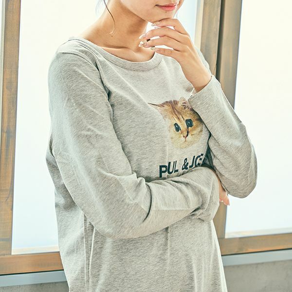 ヌネット&ジプシー(all over cat) 綿スムースロンT