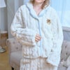 軽量で保温性のあるフリースの大きな縄目模様をかたどったもこもこ感がとっても可愛いパジャマです。大きめの作りなので羽織り感覚で着ていただけます。胸元にはブランドのアイコンの猫“ヌネット”がついており、一日の終わりに寄り添ってくれます。