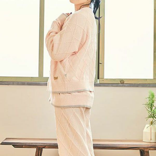 アーガイル柄 フェザーヤーンカーディガン レディース