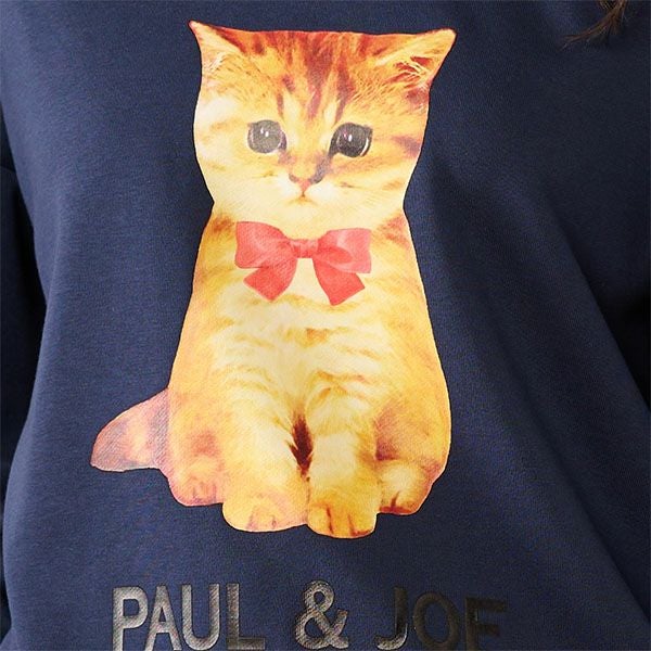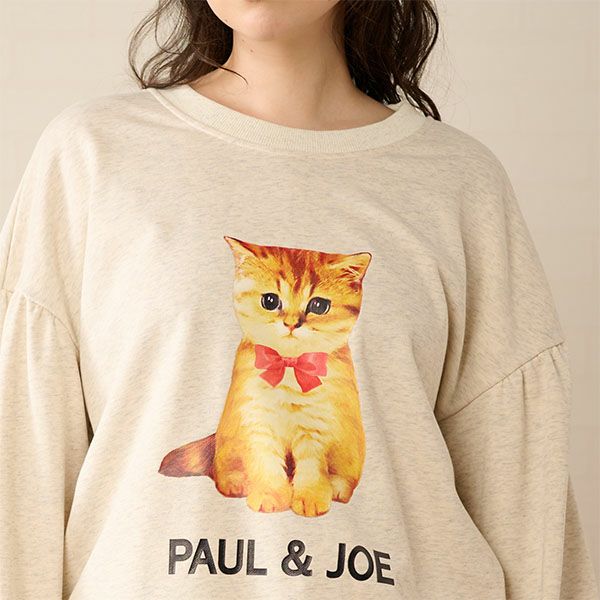 【エコバッグラッピング】 赤リボンヌネットプリント パフスリーブ スウェットトップス