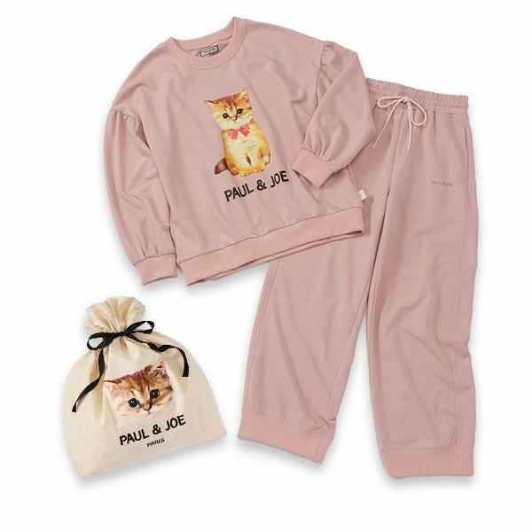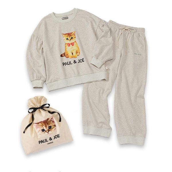 【エコバッグラッピング】赤リボンヌネットプリント スウェット セットアップ