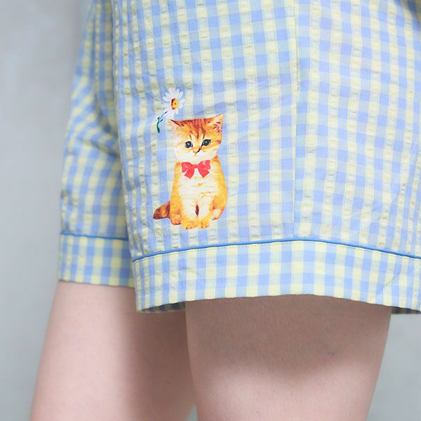 【エコバッグラッピング】お座りヌネット ビックTシャツ&お座りヌネット サッカーチェック ショートパンツ